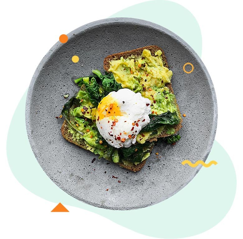 Grzanka z domowego pieczywa z pastą awokado, jajkiem poche i duszonym jarmużem